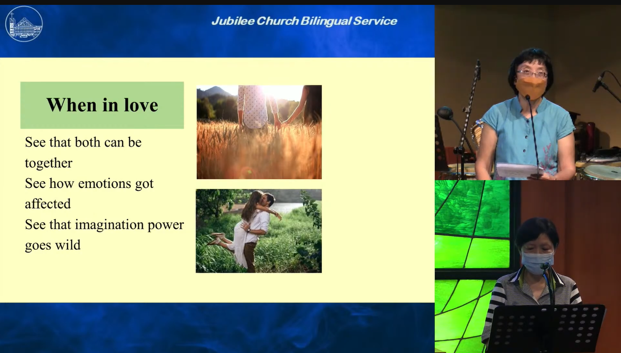 许多热恋中的男女,都渴望能够顺利走到结婚的那一天。我们很感恩,一月我们有2个婚礼。我也知道要谈恋爱到最后结婚,实在需要上帝的恩典。从定情(commit to one another)到结婚之间发生的事,对于有些人来说,好像过山车, 我希望你的不是这样。Covid也带来更多惊险的桥段, 以至于有些人的婚礼需要延迟再延迟,愿上帝祝福这样的新人! 但我也发现到有些人只想恋爱,不想成家,然而雅歌的场景,是正面指向婚姻的。在每一年重新读雅歌的时候, 好像是把人送回原厂送修。温习:重新看到上帝造的人,可以真诚,真挚的相爱,敬重,以对方的好处为前提,在相处过程中,全神贯注,赞美对方,欣赏对方。请你记得我这里说的话,如果你希望自己的配偶正直、爱上帝,负责任、保持对别人的友善,你可以做的,就是尽力去赞美你的配偶。而且长期去发掘你的配偶的优点,而不是长期批评他。
